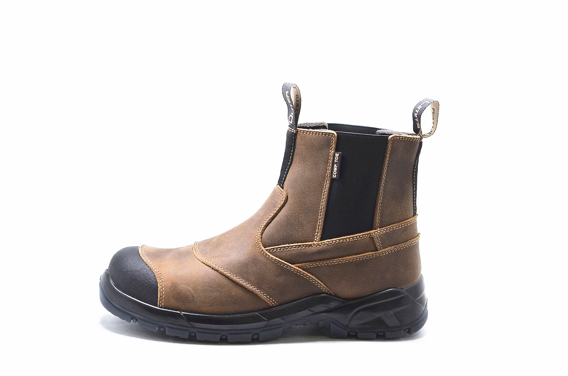 -Buffalo crazy horse leather and elastic combination upper with extra leather protector for toe part